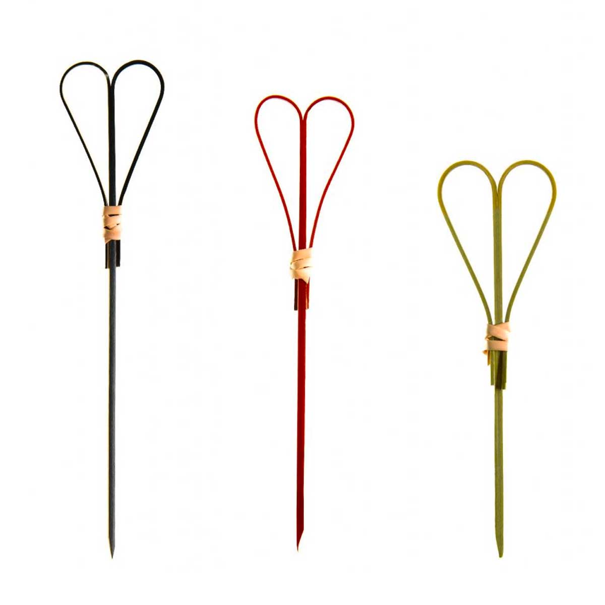 Introducing the Bamboo Looped Heart Green Skewers. Handcrafted from premium bamboo with a unique looped heart design, they add sophistication and romance to your culinary creations. Their sleek black makes them perfect for any event, from formal dinner parties to intimate date nights.