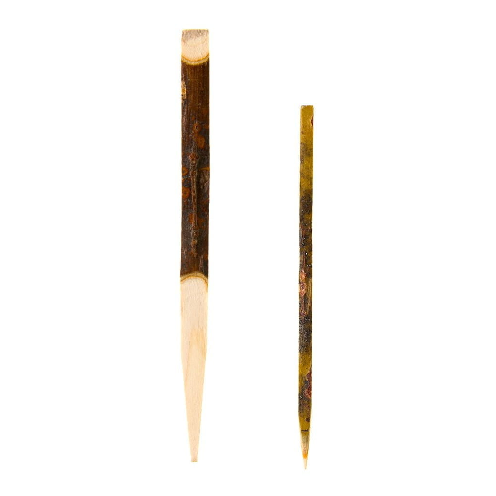 Introducing our Black Willow Kuromoji Skewers (90mm). Enhance the visual appeal of your skewered creations with their fantastic dark natural wood texture. These carved black willow sticks add a touch of class and are ideal when regular cocktail sticks fall short. Elevate your dish presentation today.